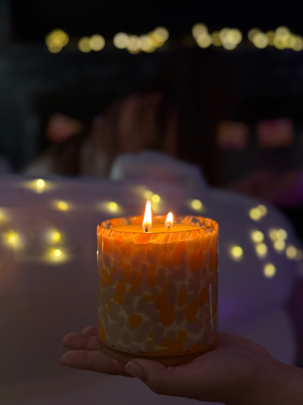 Hand-poured into a radiant orange-and-pink speckled vessel, Golden Hour is made for the quiet strength of women navigating pregnancy, birth, and motherhood.